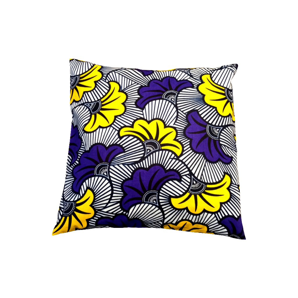 Housse de coussin en tissu wax 100% coton, 2 motifs pour décorer votre intérieur, canapé, lit, fauteuil de jardin ou à poser à même le sol en fonction de la taille. Pile dans la tendance.