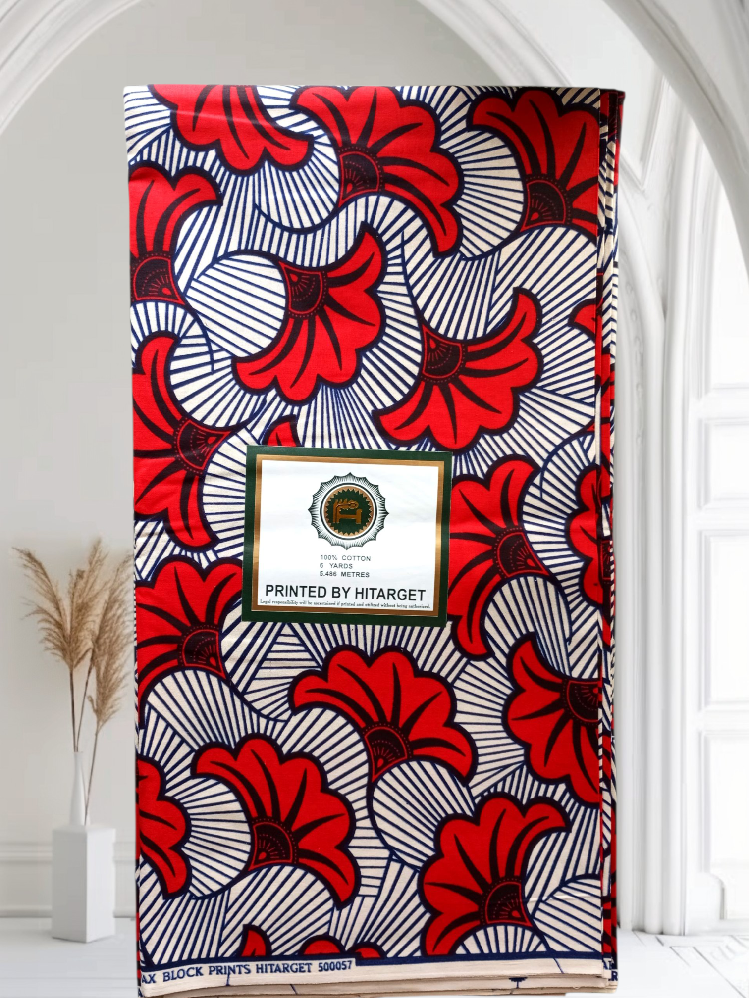 Tissu wax 100% coton avec une impression de très belle qualité et des couleurs vives, et dynamiques.