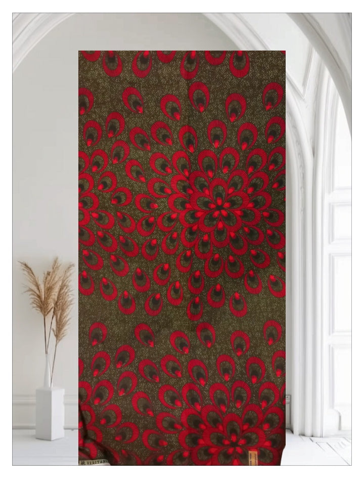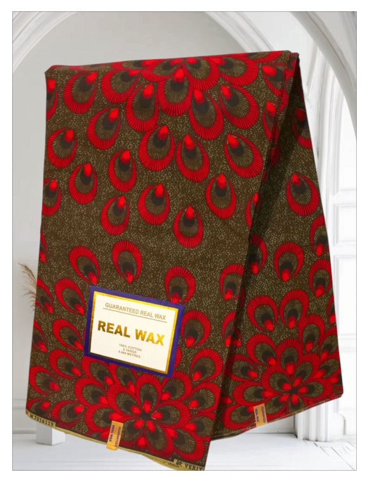Tissu wax 100% coton avec une impression de très belle qualité et des couleurs vives, et dynamiques.