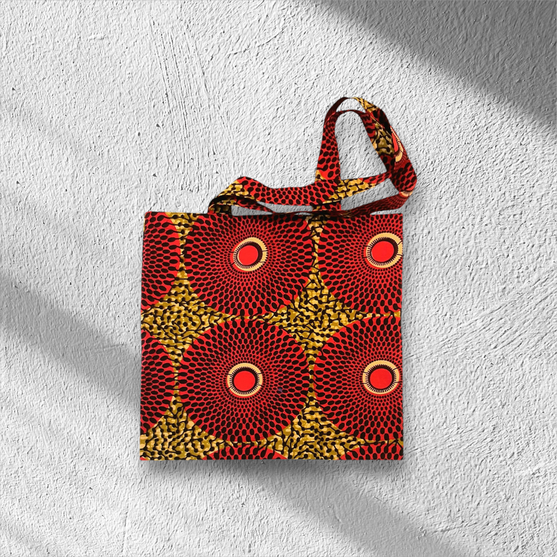 Transportez vos dossiers, vos courses, vos doudous, vos baskets avec ce tote bag en tissu wax 100% coton. Il se porte à l'épaule doublé avec du tissu polyester
